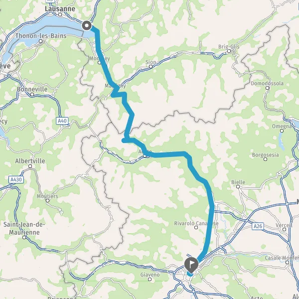 Au rond-point, prendre la 2ème sortie sur 21 E27 (Route du Grand-Saint-Bernard) et continuer sur 8,7 kilomètres