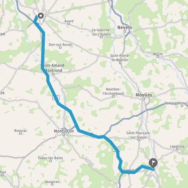 Prendre à droite et rejoindre A719. Continuer sur 22 kilomètres