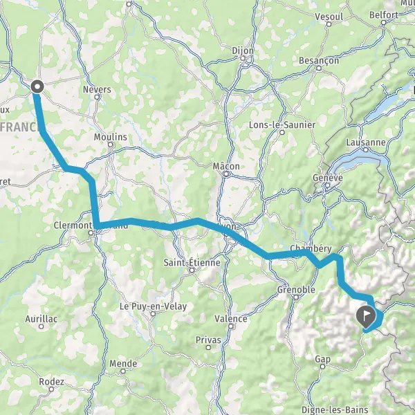 Prendre à droite et rejoindre A43 E70. Continuer sur 65 kilomètres