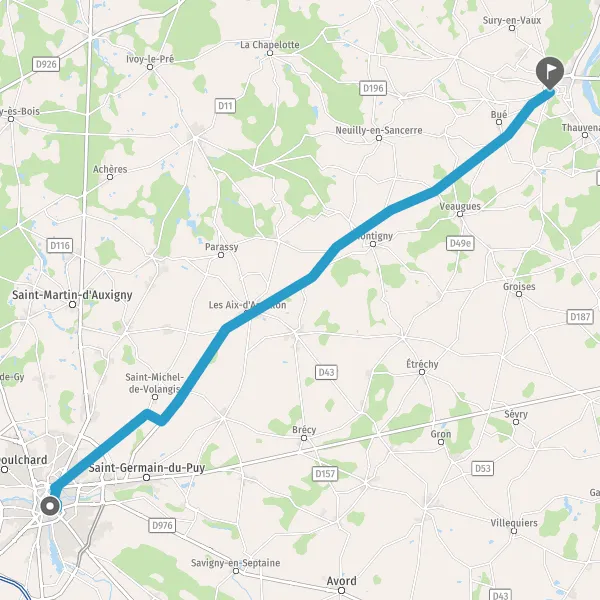 Tourner légèrement à gauche sur D955 (Route de Sancerre) et continuer sur 25 kilomètres