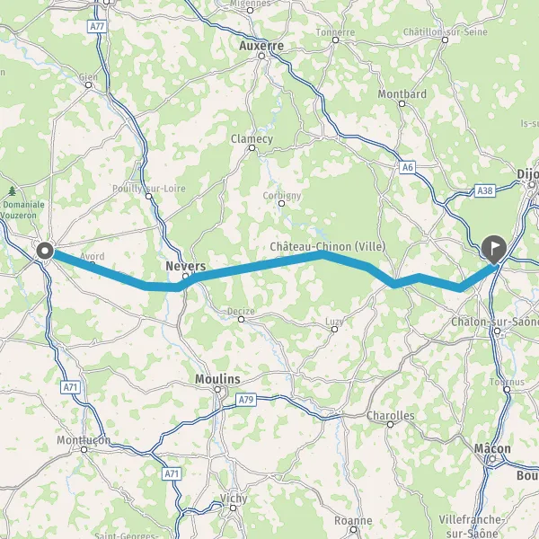 Payer 10,50 € (Péage Deux chaises) Prendre un ticket (Péage Le Montet Ouest) Payer 1,00 € (Péage Le Montet Est) Prendre un ticket (Péage Montbeugny Ouest) Payer 1,90 € (Péage Montbeugny Est) Prendre un ticket (Péage Molinet Ouest) Payer 1,30 € (Péage Molinet Est) 117 km