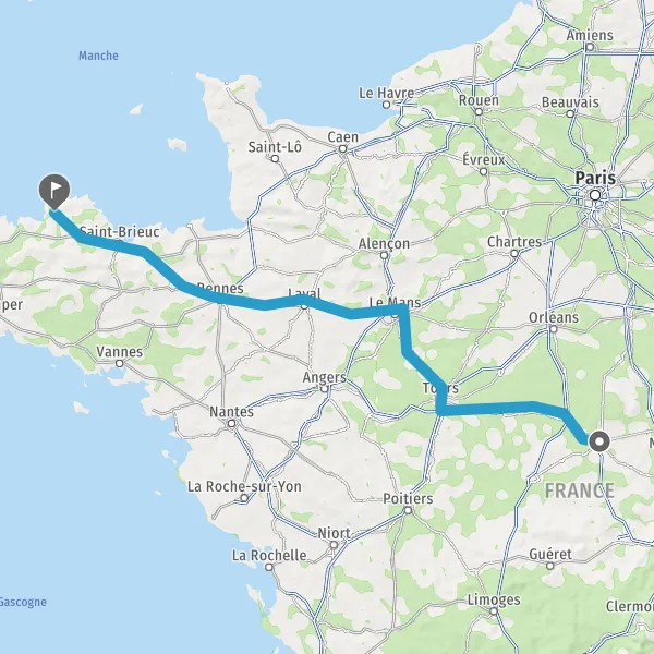 Prendre à droite et rejoindre A85 E604. Continuer sur 105 kilomètres