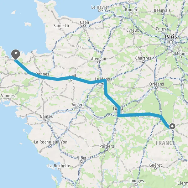 Prendre à droite et rejoindre A85 E604. Continuer sur 105 kilomètres
