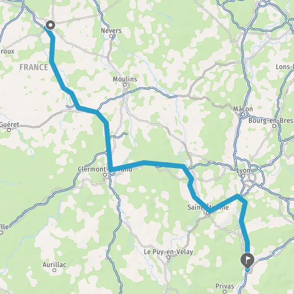 Continuer A72 sur 53 kilomètres