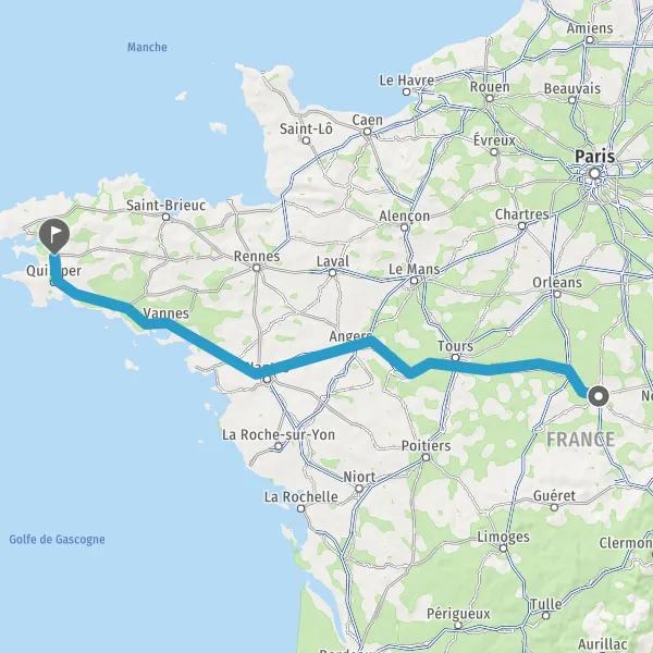 Prendre à droite et rejoindre A85 E604. Continuer sur 205 kilomètres
