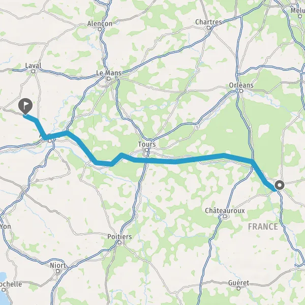 Prendre à droite et rejoindre A85 E604. Continuer sur 205 kilomètres