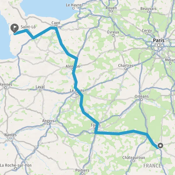 Prendre à droite et rejoindre A84 E401. Continuer sur 45 kilomètres