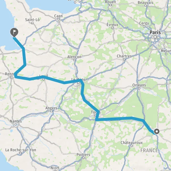 Prendre à droite et rejoindre A85 E604. Continuer sur 105 kilomètres
