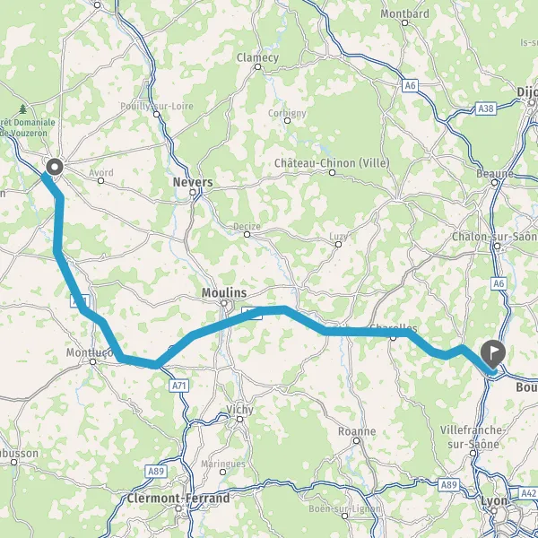 Payer 10,50 € (Péage Deux chaises) Prendre un ticket (Péage Le Montet Ouest) Payer 1,00 € (Péage Le Montet Est) Prendre un ticket (Péage Montbeugny Ouest) Payer 1,90 € (Péage Montbeugny Est) Prendre un ticket (Péage Molinet Ouest) Payer 1,30 € (Péage Molinet Est) 116 km