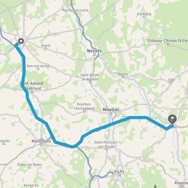 Payer 10,50 € (Péage Deux chaises) Prendre un ticket (Péage Le Montet Ouest) Payer 1,00 € (Péage Le Montet Est) Prendre un ticket (Péage Montbeugny Ouest) Payer 1,90 € (Péage Montbeugny Est) Prendre un ticket (Péage Molinet Ouest) 116 km
