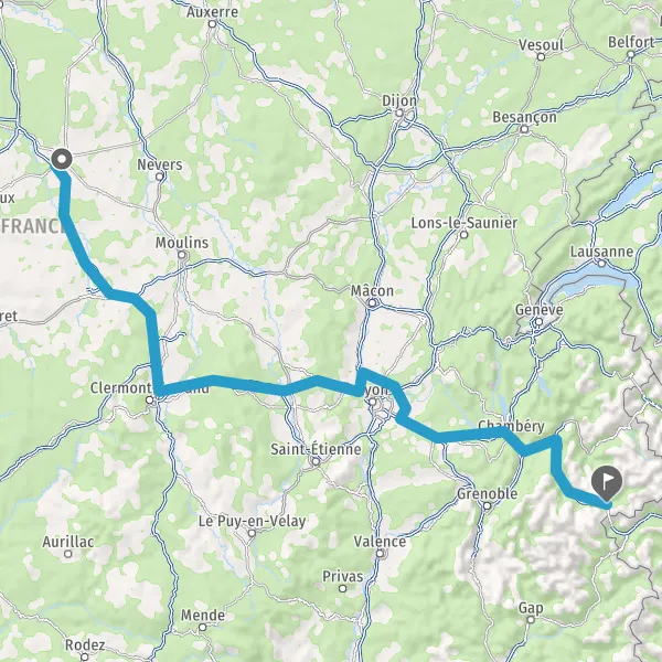Prendre à droite et rejoindre A43 E70. Continuer sur 65 kilomètres