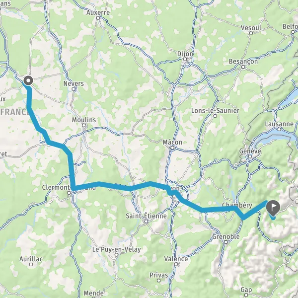 Prendre à droite et rejoindre A43 E711 E70. Continuer sur 21 kilomètres