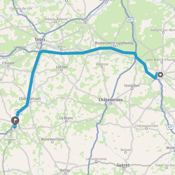 Prendre à droite et rejoindre A71. Continuer sur 37 kilomètres