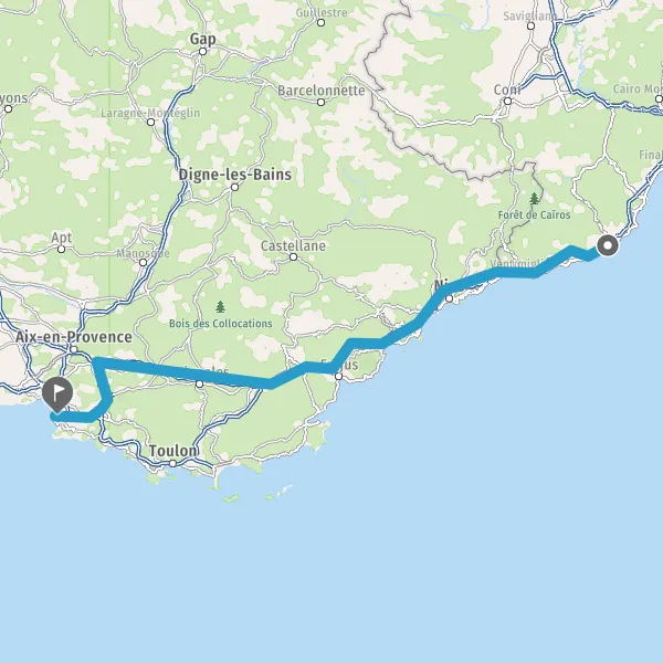Itinéraire en voiture de Imperia 18100 Ligurie (Italie) à Marseille 13001-13016