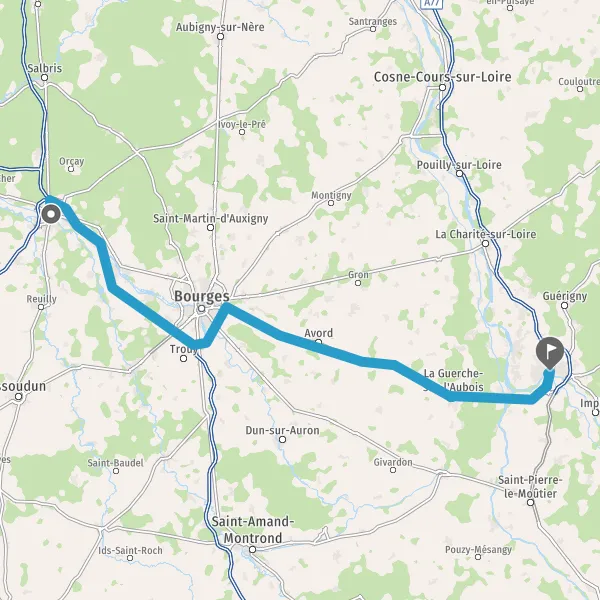Au rond-point, prendre la 2ème sortie sur D2076 (Route de Bourges) et continuer sur 5,5 kilomètres