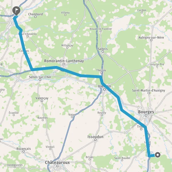 Tourner à droite sur D2144 (Route de Bourges) et continuer sur 18 kilomètres