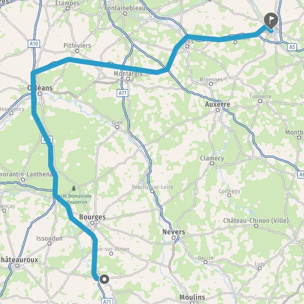 Prendre à droite et rejoindre A71 E11. Continuer sur 151 kilomètres