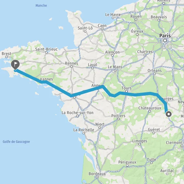 Prendre à droite et rejoindre A85 E604. Continuer sur 205 kilomètres