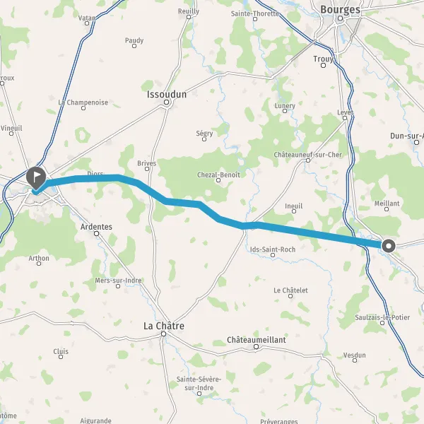 Tourner légèrement à droite sur D925 (Route de Châteauroux) et continuer sur 8,1 kilomètres