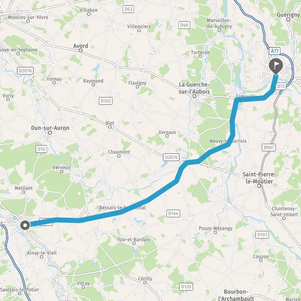 | Distance en voiture | 67 km à 77 km |