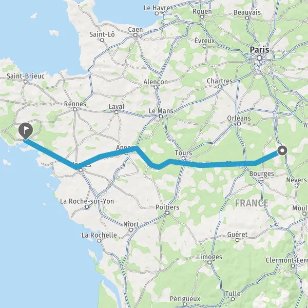 Prendre à droite et rejoindre A85 E604. Continuer sur 205 kilomètres