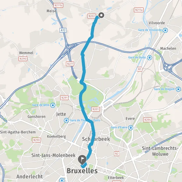 Prendre N211 (Vilvoordsesteenweg) et continuer sur 65 mètres