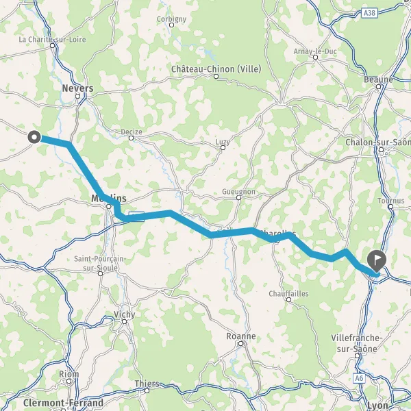 Prendre un ticket (Péage Montbeugny) Payer 1,00 € (Péage Montbeugny Est) Prendre un ticket (Péage Molinet Ouest) Payer 1,30 € (Péage Molinet Est) 62 km