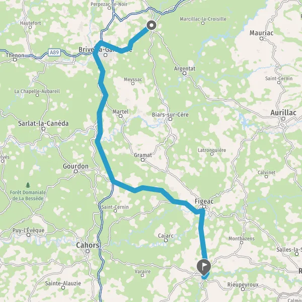 Tourner légèrement à droite sur D940 (Route de Beaulieu) et continuer sur 25 kilomètres