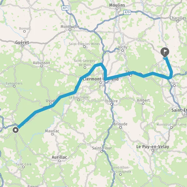 Prendre à droite et rejoindre A89 A71 E11 E70. Continuer sur 19 kilomètres