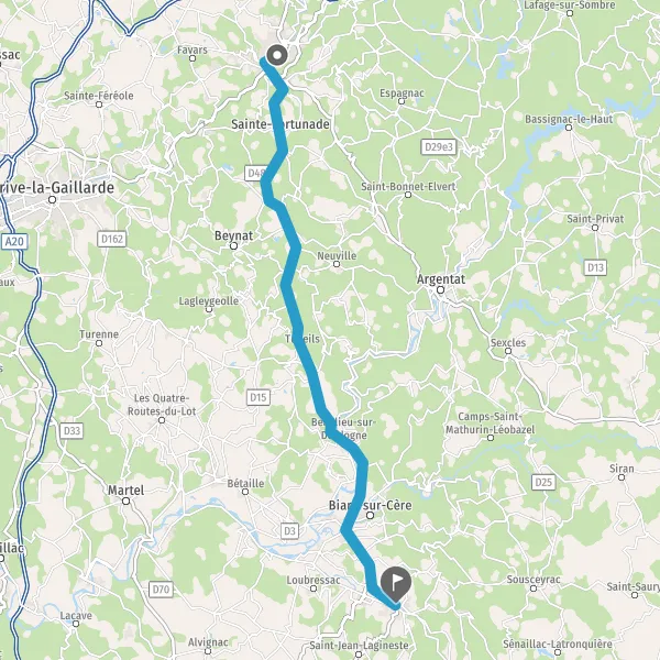 Tourner légèrement à droite sur D940 (Route de Beaulieu) et continuer sur 25 kilomètres