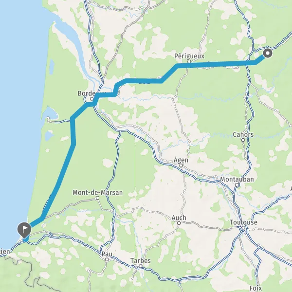 Prendre à droite et rejoindre A63. Continuer sur 172 kilomètres