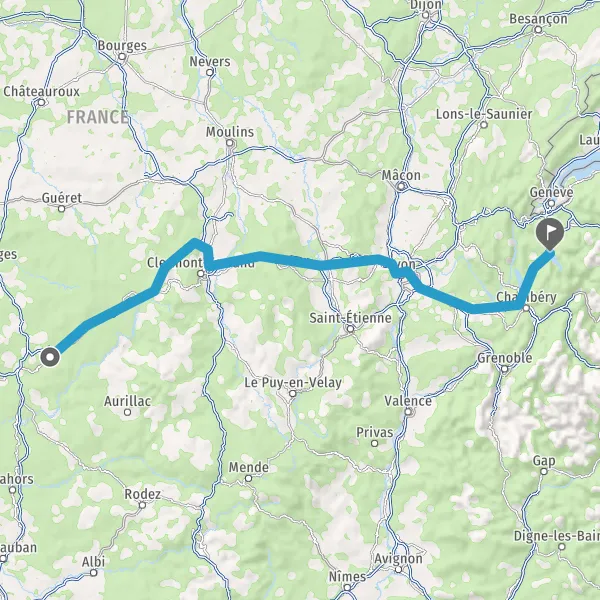 Prendre à droite et rejoindre A89 E70. Continuer sur 84 kilomètres