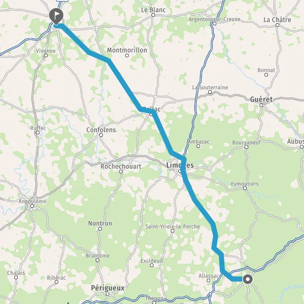 Au rond-point, prendre la 1ère sortie sur N147 (Route de Poitiers) et continuer sur 27 kilomètres
