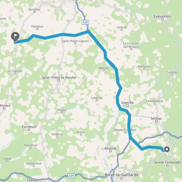 Prendre à droite et rejoindre A20. Continuer sur 50 kilomètres