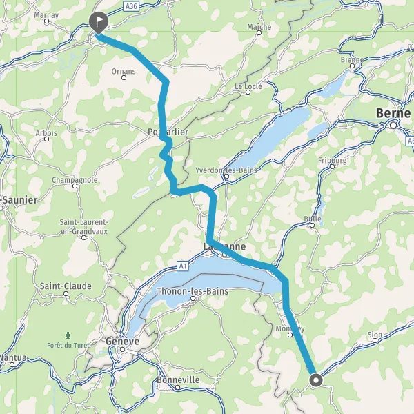 Entrer en France et prendre N57 E23 (Route de Vallorbe) sur 4,9 kilomètres