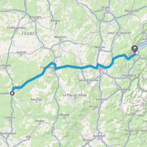 Prendre à droite et rejoindre A89 E70. Continuer sur 84 kilomètres