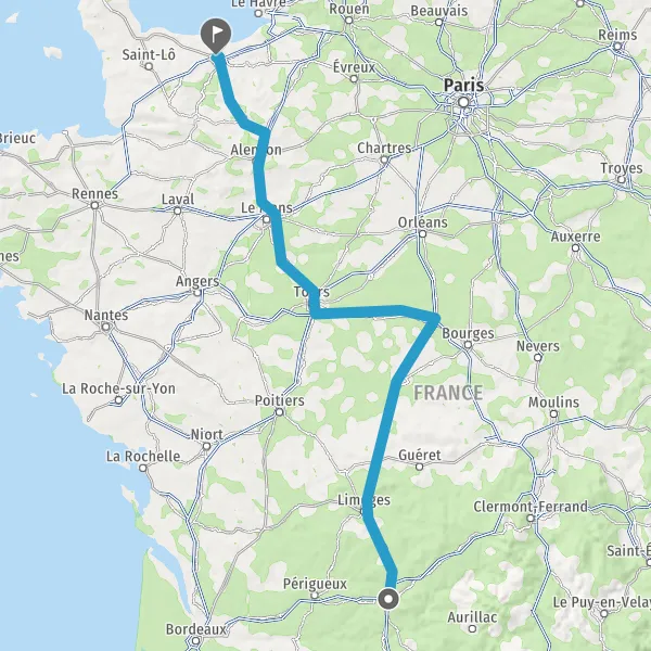 Prendre à droite et rejoindre A20 E70 E9. Continuer sur 265 kilomètres