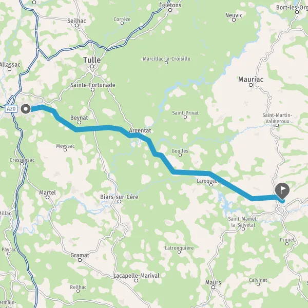 Tourner légèrement à gauche sur D169 (Route d'Argentat) et continuer sur 7,4 kilomètres