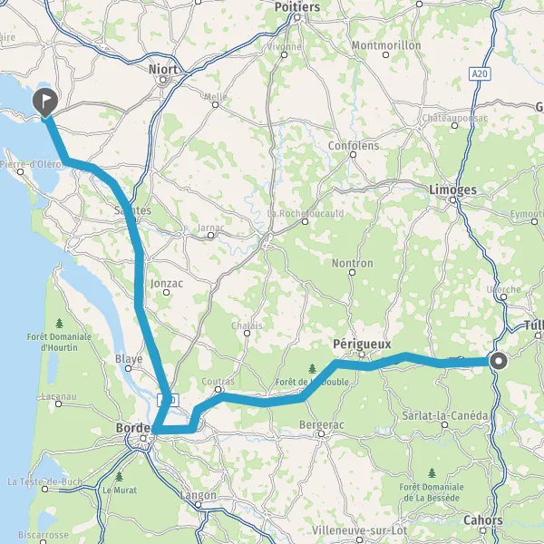 Continuer et rejoindre A837 E602. Continuer sur 34 kilomètres