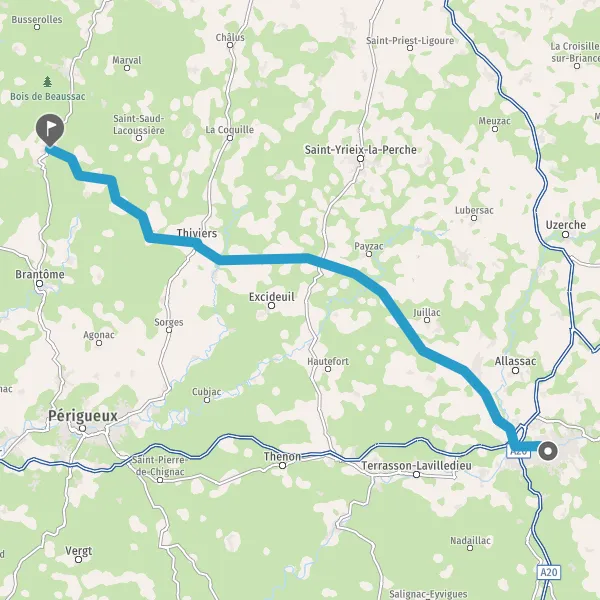 Prendre à droite et rejoindre D707 (Route de Nontron). Continuer sur 14 kilomètres