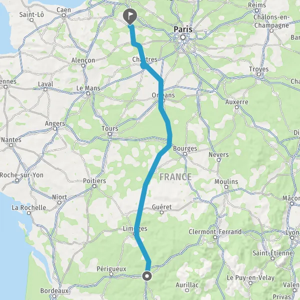 Prendre à droite et rejoindre A20 E70 E9. Continuer sur 265 kilomètres