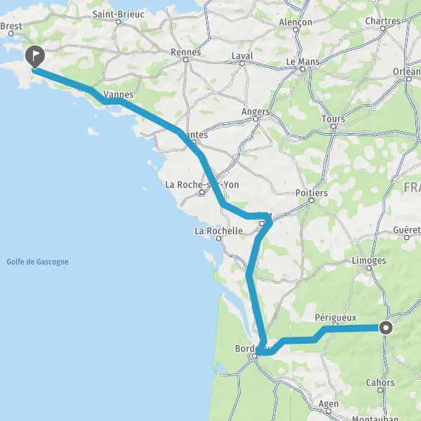Prendre à droite et rejoindre A83. Continuer sur 150 kilomètres