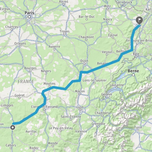 Prendre à droite et rejoindre A36. Continuer sur 225 kilomètres