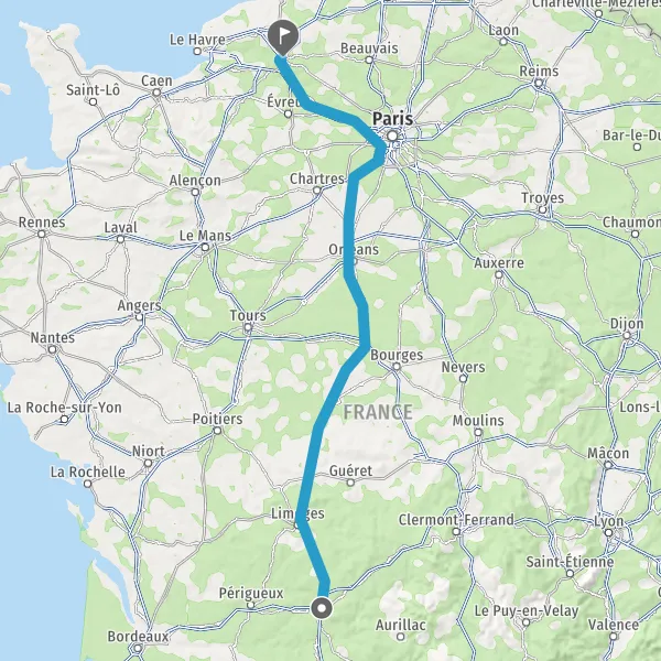 Prendre à droite et rejoindre A20 E70 E9. Continuer sur 265 kilomètres