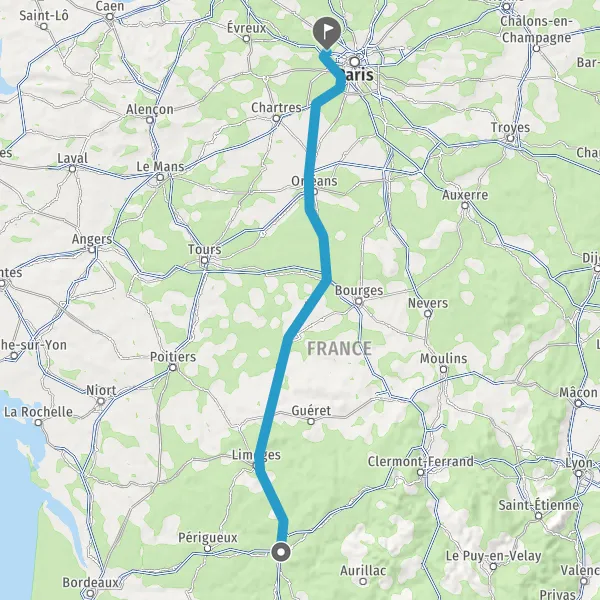 Prendre à droite et rejoindre A20 E70 E9. Continuer sur 265 kilomètres