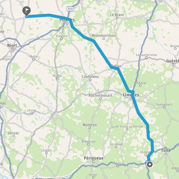 Au rond-point, prendre la 1ère sortie sur N147 (Route de Poitiers) et continuer sur 27 kilomètres