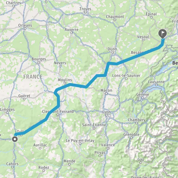Prendre à droite et rejoindre A36. Continuer sur 180 kilomètres
