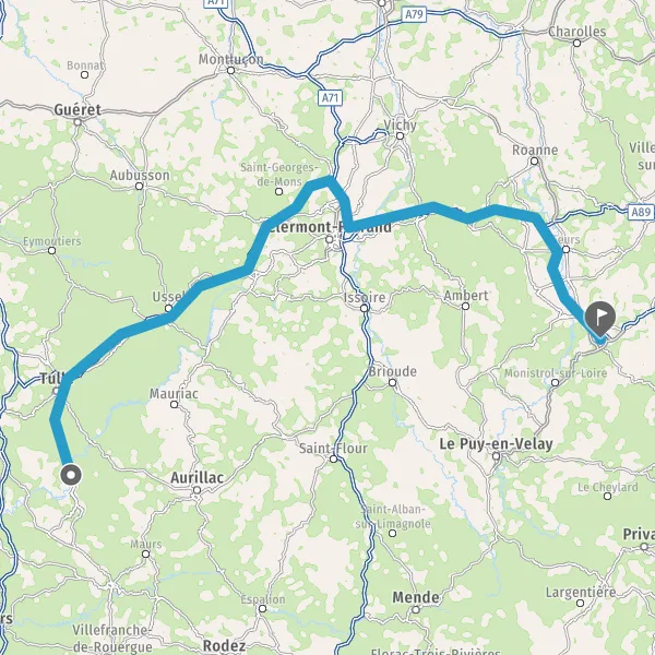 Prendre à droite et rejoindre A89 A71 E11 E70. Continuer sur 19 kilomètres