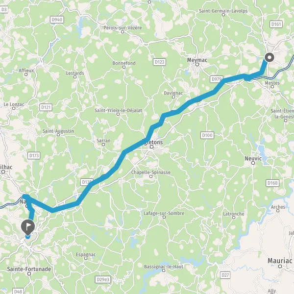 Tourner légèrement à gauche sur D1120 (Avenue de Ventadour) et continuer sur 1,5 kilomètre
