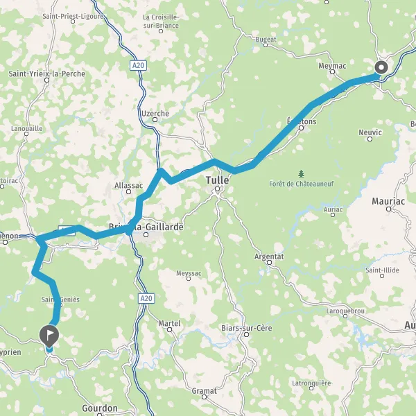 Prendre à gauche et rejoindre A20 E9 E70. Continuer sur 19 kilomètres